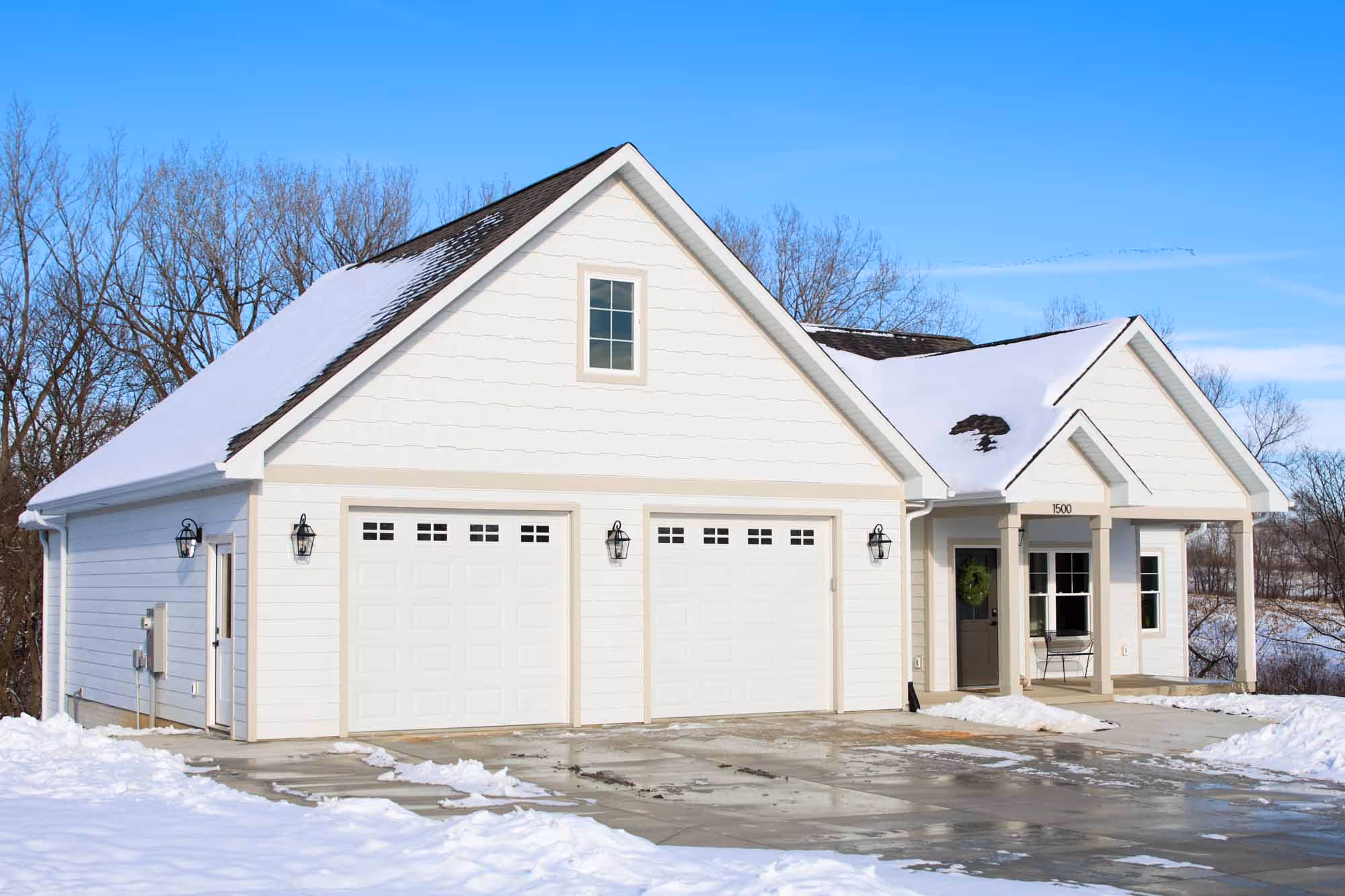 Our team came in and did a complete siding and trim upgrade to this beautiful home. Our client liked the idea of different siding design above compared to what you see around the base of the house. The light colored trim paired well with the white siding to make the house feel new, fresh, and inviting.